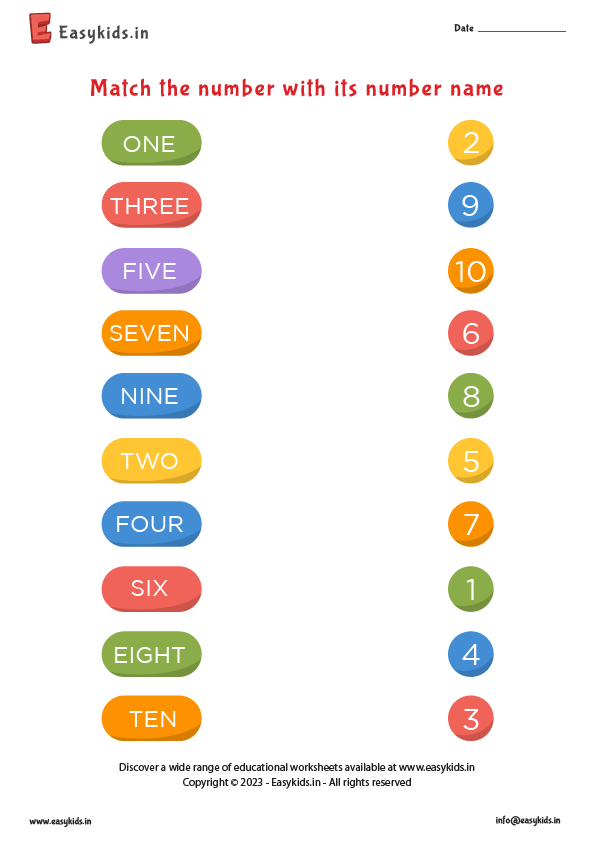 Number name worksheet 1 - 10 - EasyKids.in