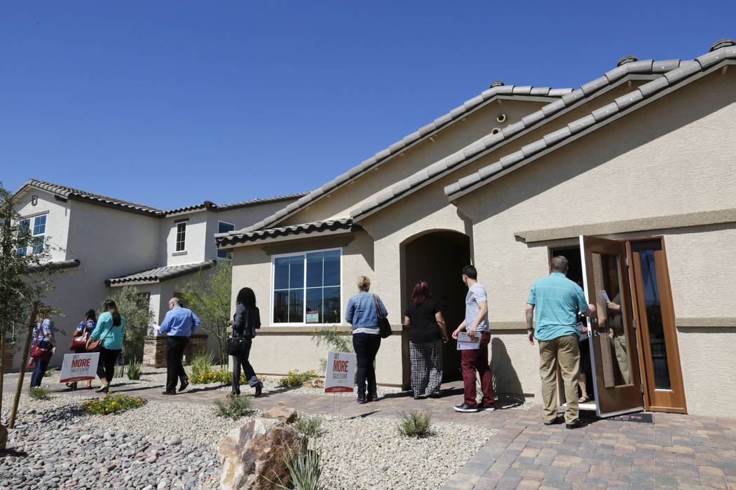 Attendees tour model houses by Beazer Homes at Falcon Ridge community in North Las Vegas during a 2017 bus tour. (Las Vegas Review-Journal File Photo) ...